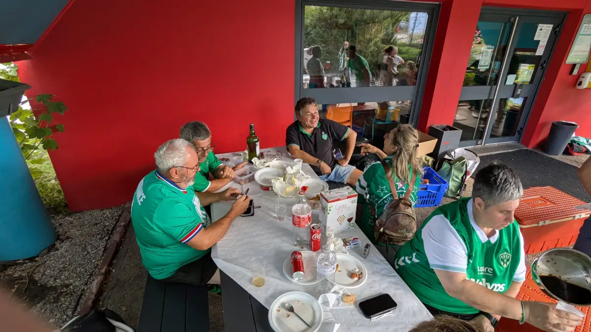 Le réveil sonne à peine, mais les visages sont déjà illuminés. 18 membres de la section 109, plus quelques renforts, se pressent autour des véhicules. Direction : Saint-Étienne, pour le premier déplacement de la saison. « Allez, on part ! Mirepoix, Bram, Narbonne… Personne ne reste sur le carreau ! » lance un membre en claquant la portière. Dans la brume matinale, une certitude : aujourd’hui, le peuple vert se met en marche.